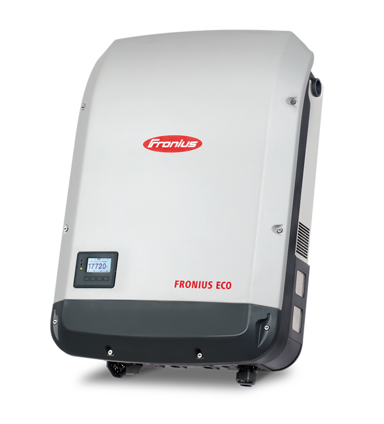 The three-phase Fronius Eco in power categories 25.0 and 27.0 kW perfectly meets all the requirements of large-scale installations. Thanks to its light weight and SnapINverter mounting system, this transformerless device can be installed quickly and easily either indoors or outdoors. This inverter series sets new standards with its IP 66 protection class. In addition, its integrated all-pole string fuse holders and optional DC fuse mean that string collection boxes are no longer required.